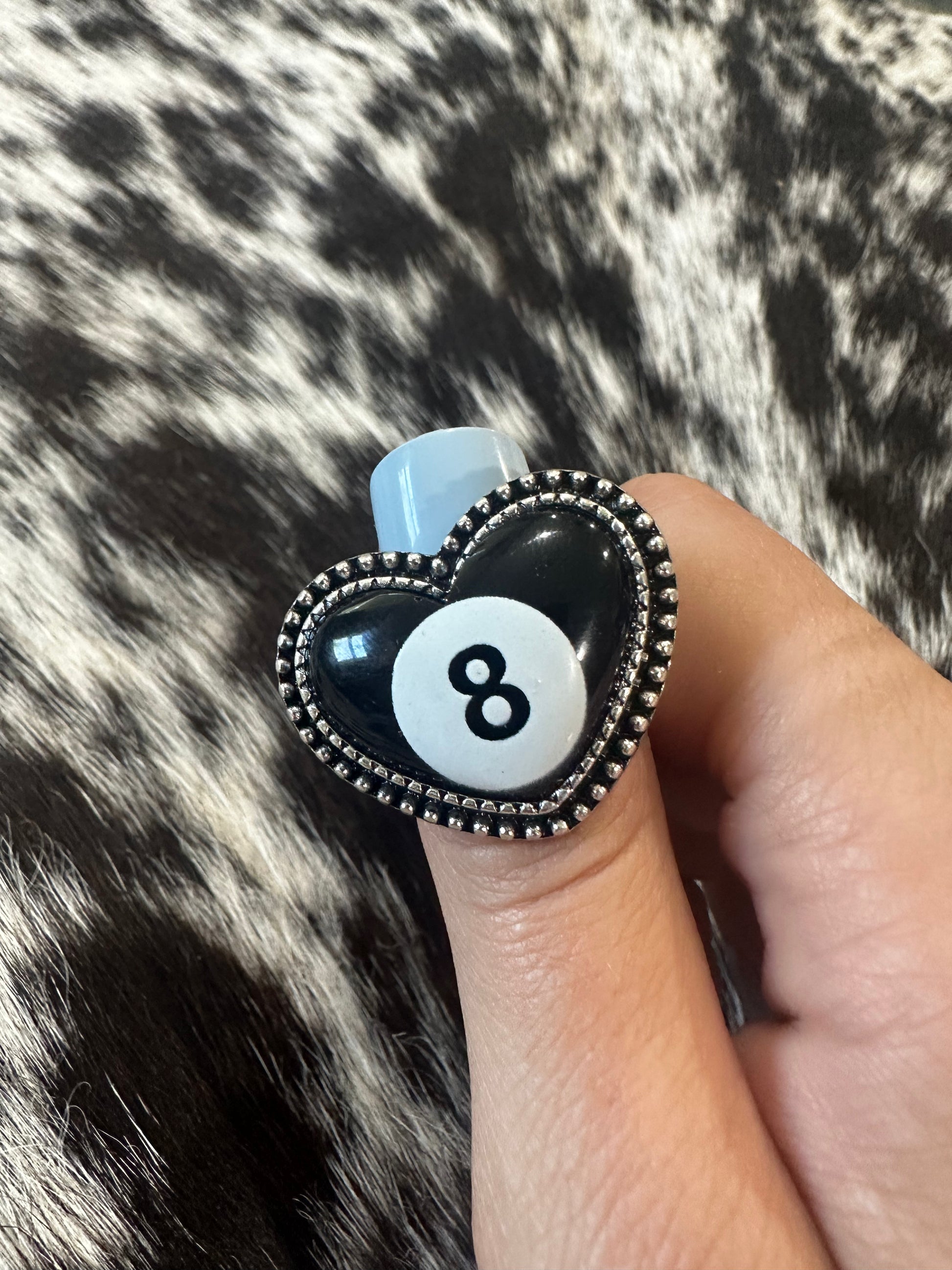 Adjustable 8 ball heart ring