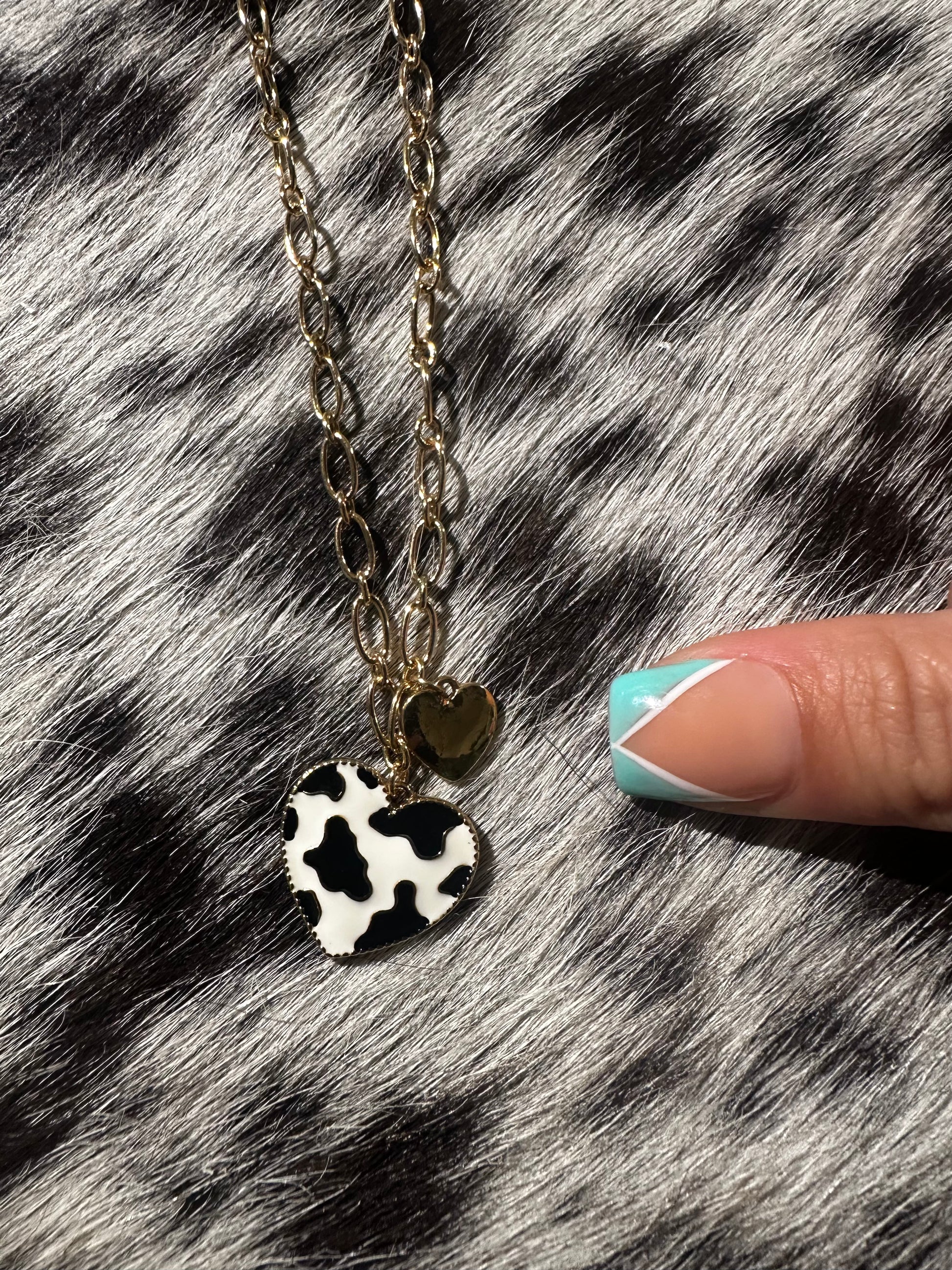 Cow print heart necklace